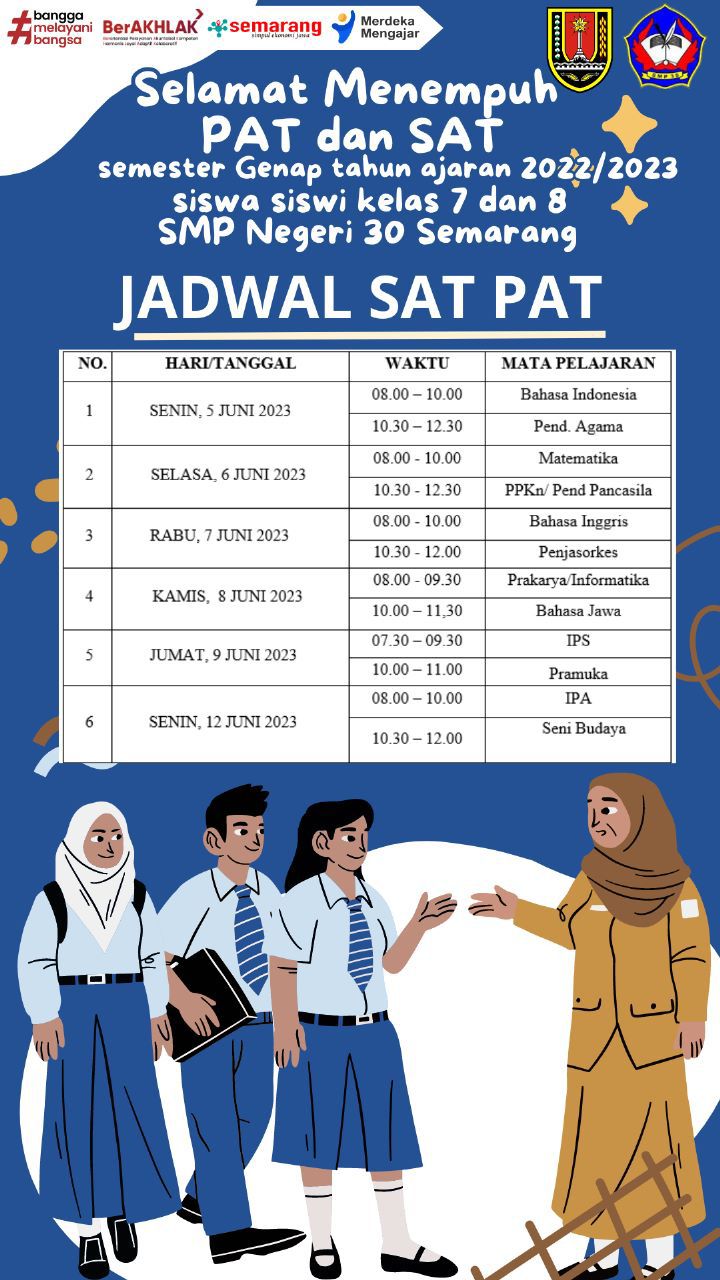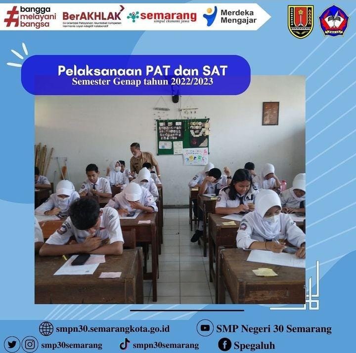 Pelaksanaan Penilaian Akhir Tahun (PAT) dan Sumatif Akhir Tahun (SAT) dilaksanakan pada tanggal 5 Juni 2023 - 12 Juni 2023.