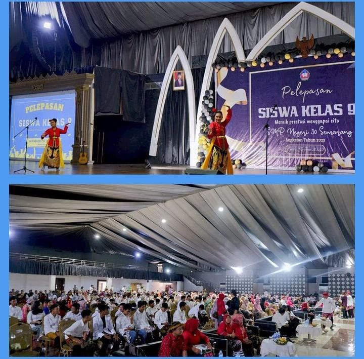 Semarang, Sabtu 17 Juni 2023 SMP Negeri 30 Semarang menyelenggarakan Pelepasan Siswa Kelas 9 Tahun Pelajaran 2022/2023. Acara pelepasan diselenggarakan di Gedung UTC yang terletak di Jl. Kelud Raya No.2, Petompon, Kec. Gajahmungkur, Kota Semarang, acara dimulai pada pukul 08.00 WIB. Pelepasan siswa kelas IX pada tahun ini mengambil tema “Meraih Prestasi Mengapai Cita”.